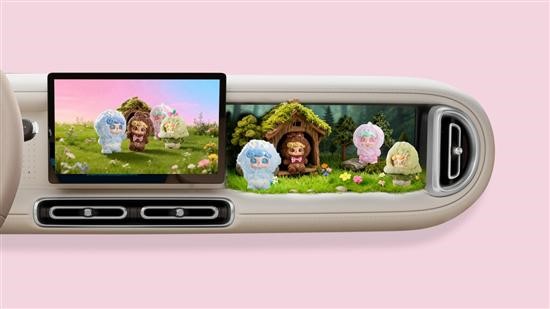 值得一提的是,新车副驾仪表台的“百变造景空间”设计是一大亮点,该设计打破了传统储物空间的单一功能定位,将仪表台区域打造为兼具储物功能与展示功能的空间,车主可根据需求更换摆件、调整主题造景,让座舱成为个性化表达的载体。同时,新车还与盲盒IP Q宝展开联动,将潮玩元素融入座舱设计中。
