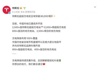 特斯拉官方宣布:全球超级充电桩突破8万根